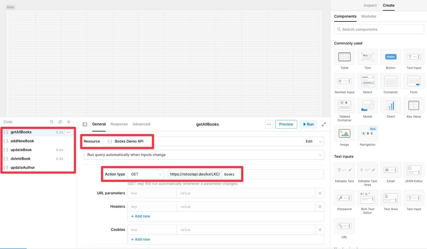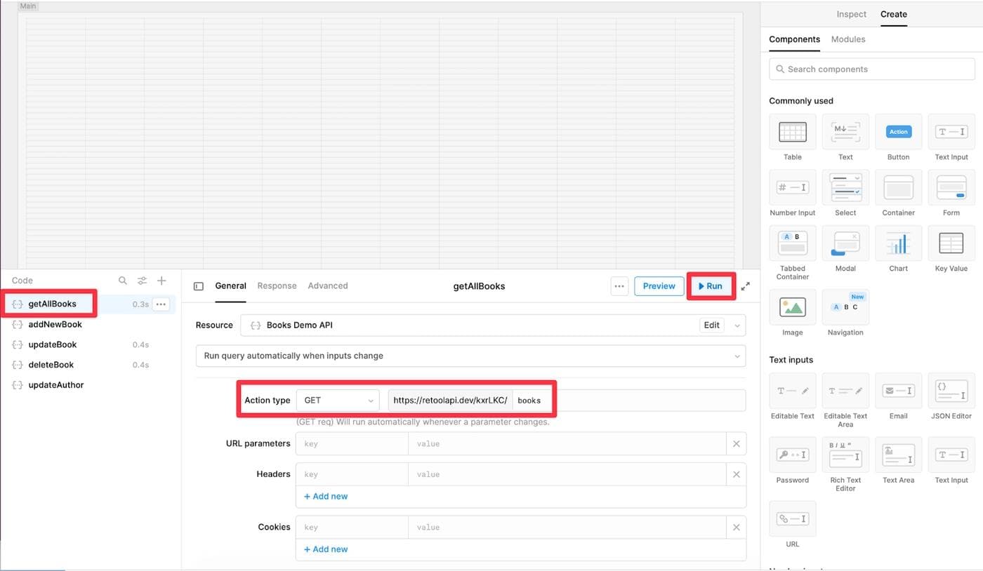 💡For the purpose of this demo, we will be using a Books API endpoint created using this Generate API from CSV tool provided by Retool.