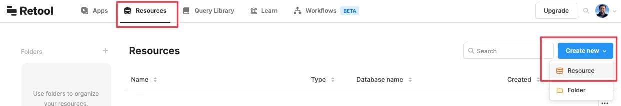 Before we can test the four CRUD operations in Retool, we need to create a Resource for the API endpoint we want to play around with.