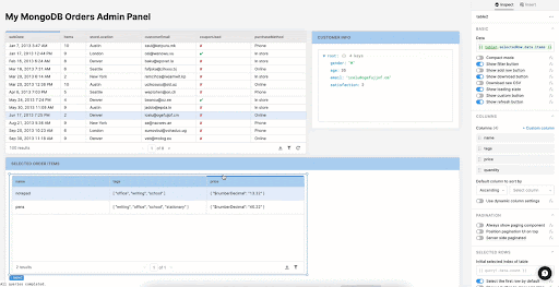 In this tutorial, we went through building a basic MongoDB GUI, with some simple components and actions. Hopefully, you’ve gleaned the customization capabilities with inline JavaScript, and some query manipulation. To see more, including creating, deleting, updating, and sorting items in MongoDB, check out this video: