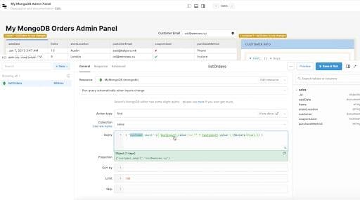 In this post, we’ll show you how to build a simple yet powerful admin panel for your MongoDB instance. Using MongoDB’s sample data, we’ll demonstrate how to query data, build tables and components, and use inline JavaScript to customize them—basically, everything you need in a great MongoDB client/admin panel/GUI with Retool (interested in other options? Check out our guide to best MongoDB GUIs).