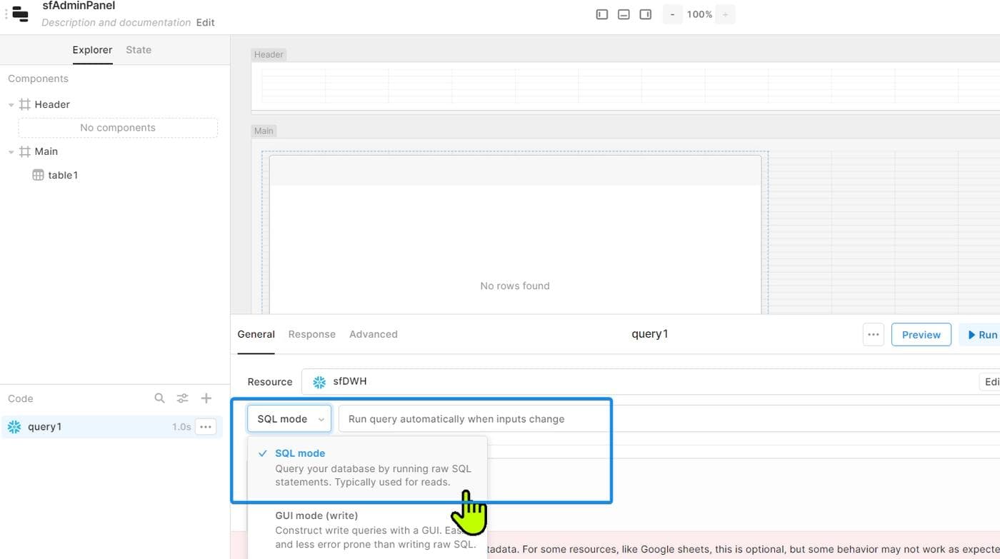 To make implementing Snowflake in Retool easier, this article contains a tutorial on how to build a simple admin panel with it. These same concepts could be extended to other data warehouses, and if you're looking for a similar step-by-step guide, let us know!