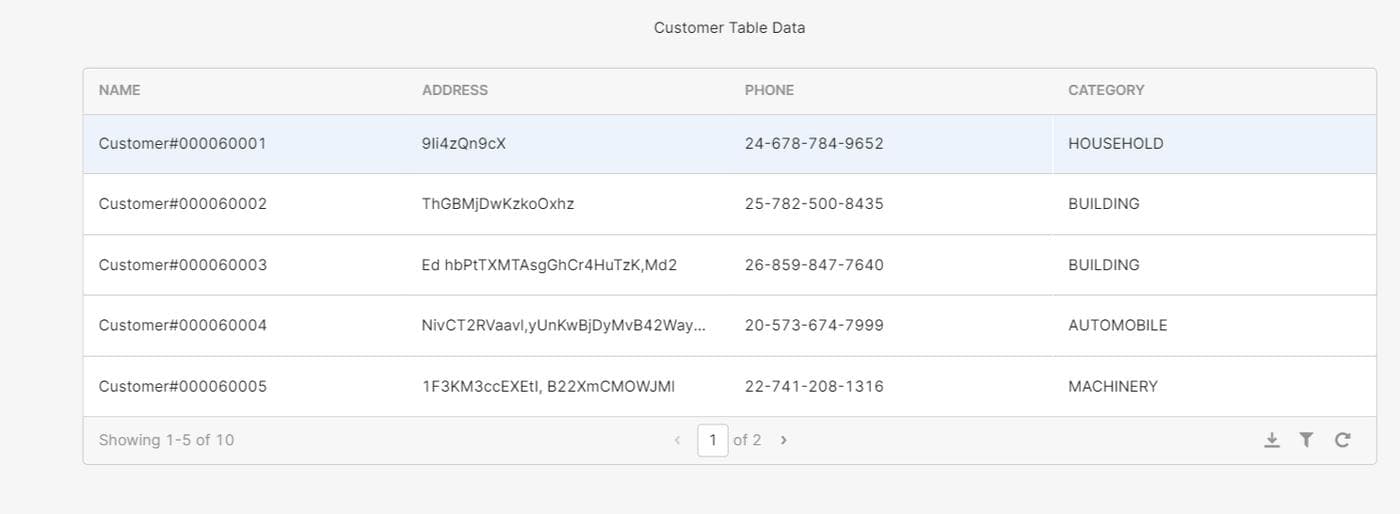 Now add a simple text box at the top of the UI Table component. Modify the text in it as "Customer Data View".