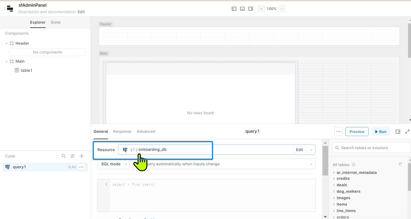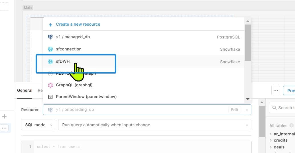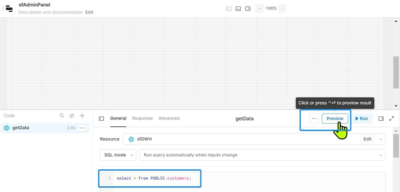 With Snowflake successfully connected to Retool, you can now create an admin panel app for accessing Snowflake data.