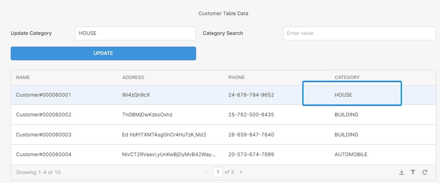 - To see the changes in the table view, you'll have to refresh the table using the refresh button in the bottom-right corner. After refreshing, you should be able to see the updated value "HOUSE" in the Category attribute of the first record.