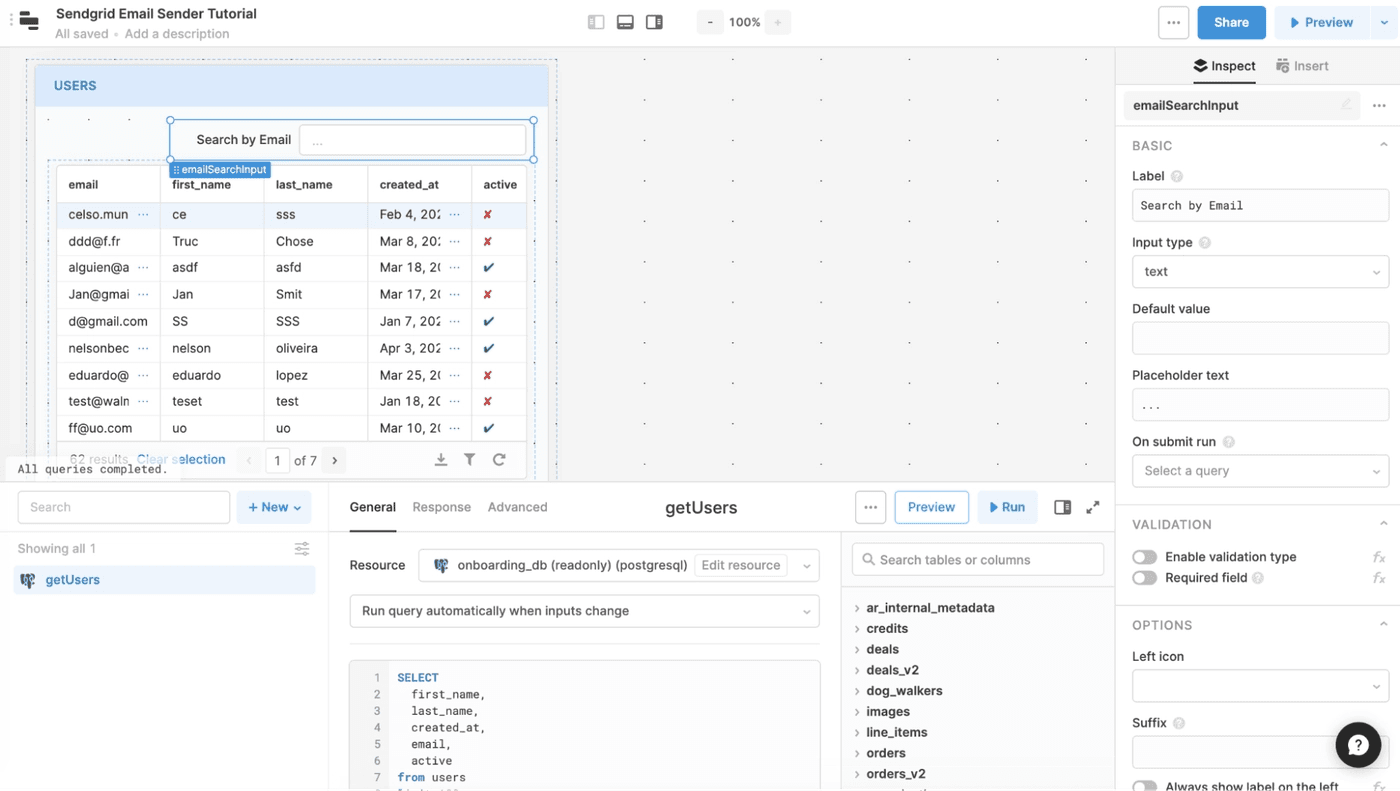 Congrats! You’ve built a fully functional email sender app with the SendGrid API in under an hour. There’s a lot more you can do with SendGrid and Retool, like: