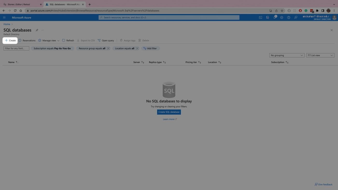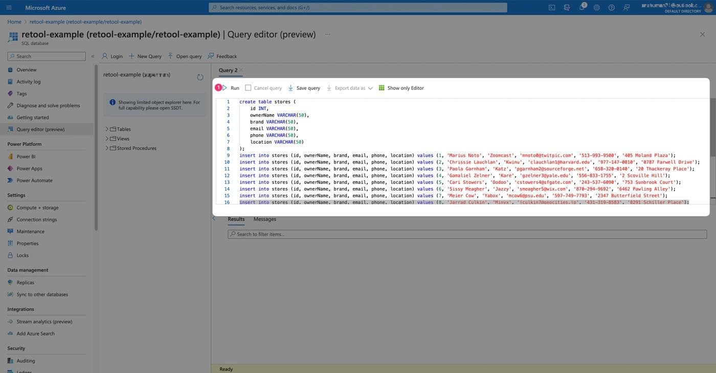 Go to the retool-example database page on the Azure dashboard and click Query editor on the left navigation.