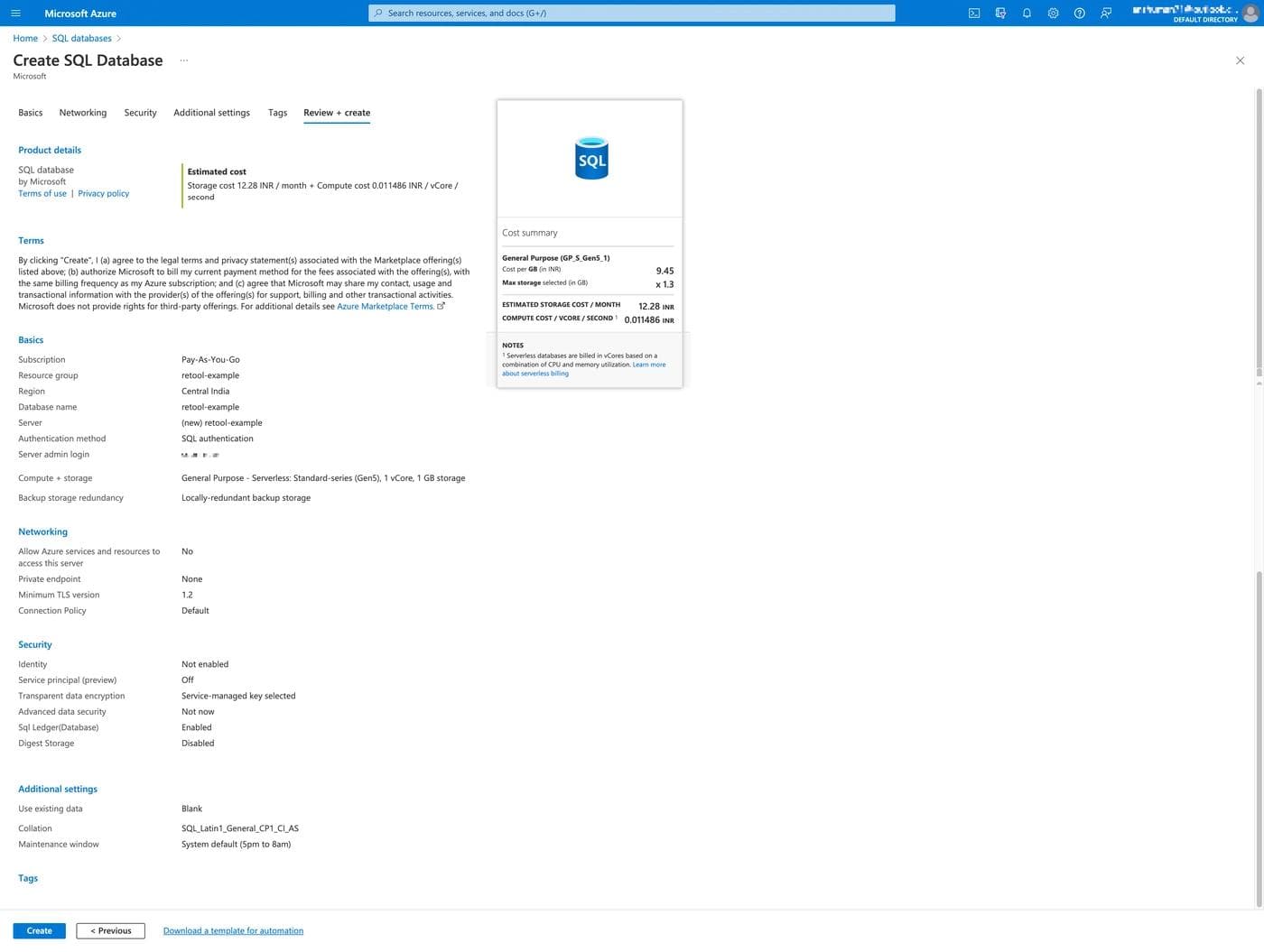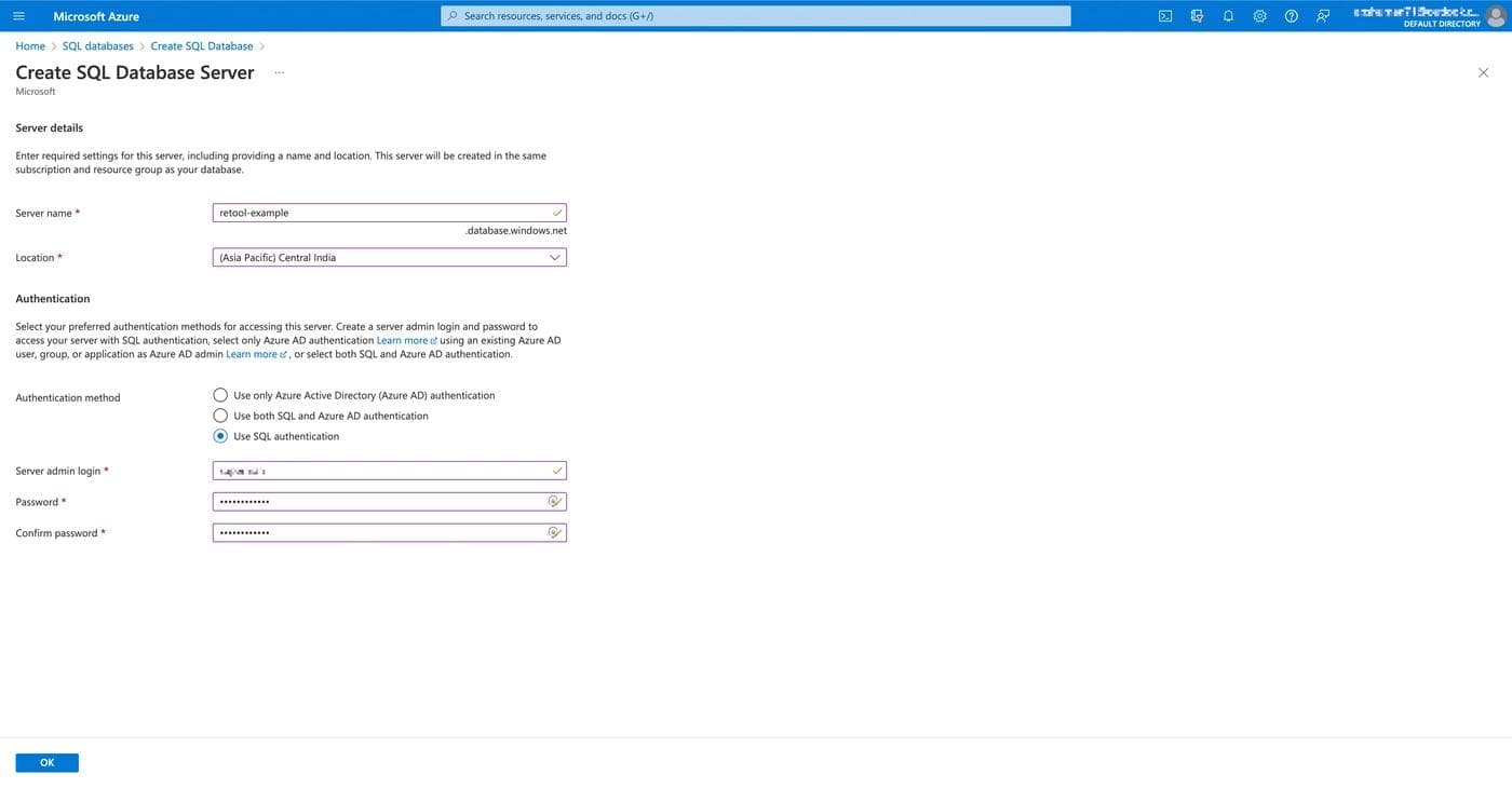 Create the admin login credentials for your database. Save the server name, username, and password securely to use later.