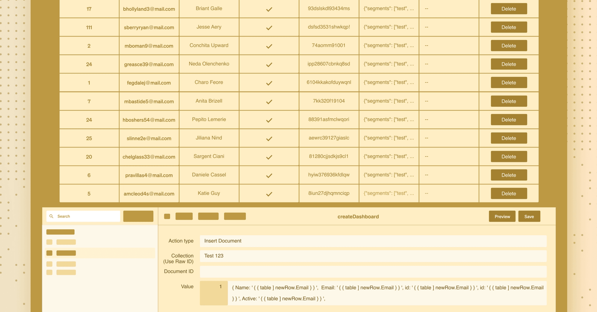 It is important to make sure all our columns are editable to support our intended update document functionality. To do this, go to the column selector on the right-hand side and toggle "Make editable" for each column (id column, email, name, access, etc.).