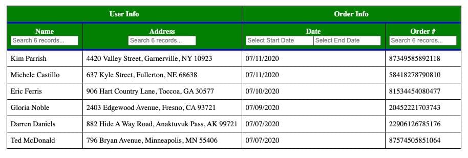 For this tutorial, we're working with a table that lists and orders our data, and has a nifty datepicker for sifting through the orders.