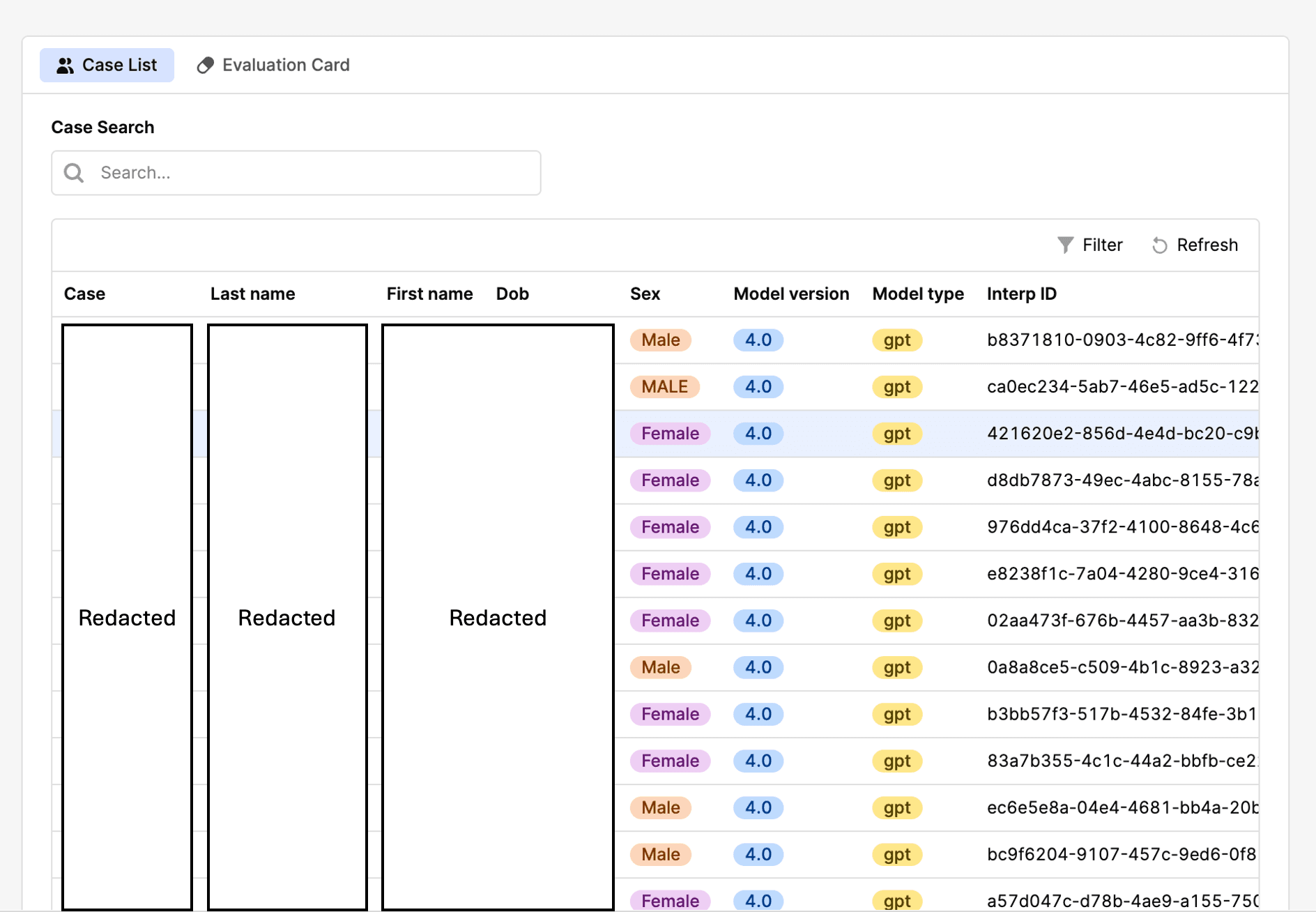 AutoTox presents a case list along with case metadata, test results, and interpretive text for pathologists to review and verify findings (as well as provide feedback on the quality of model outputs). Pathologists can then send these results to the medical record system.