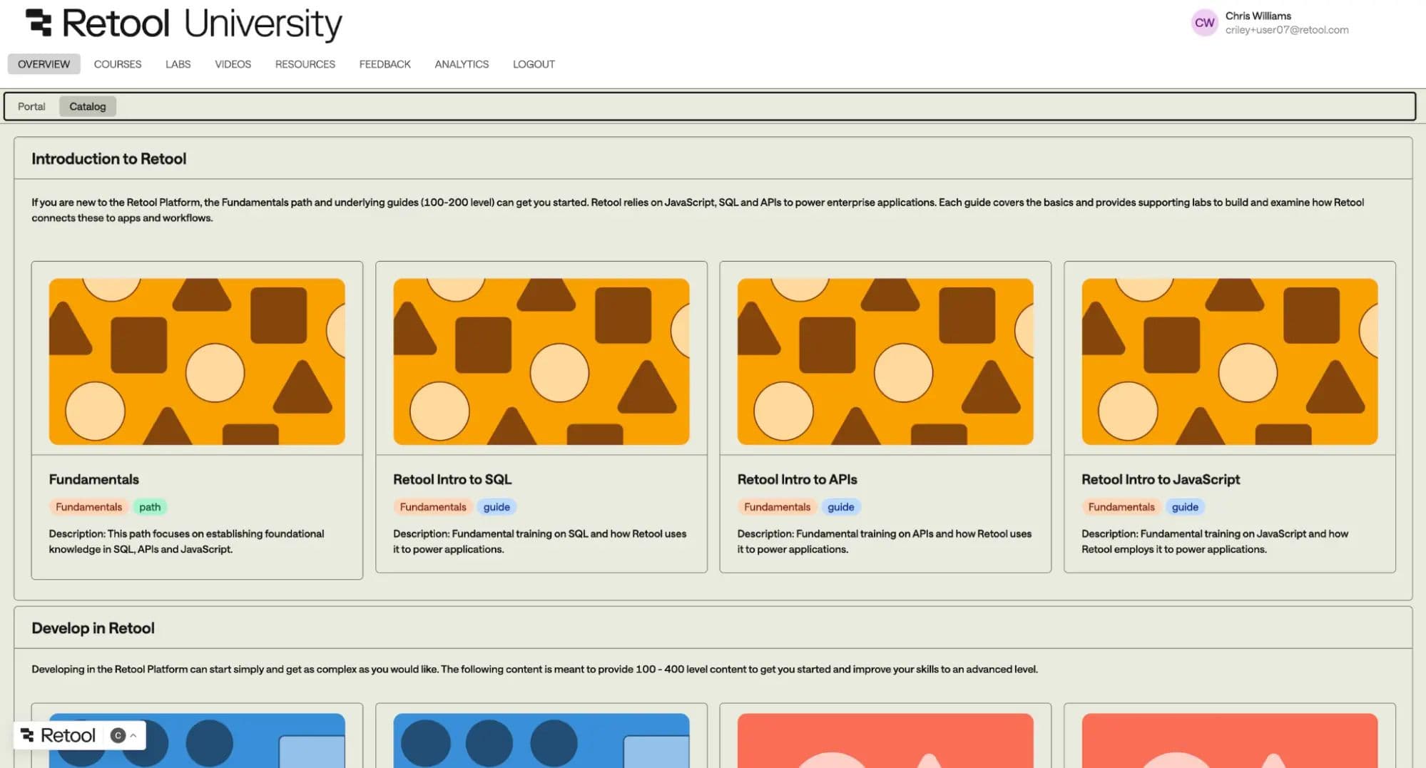 Now anyone can start building better apps quickly. With free courses, curated learning paths, labs, and videos, Retool University lets you build a curriculum that’s relevant to your company and goals. Our announcement post has everything you need to start your learning journey.