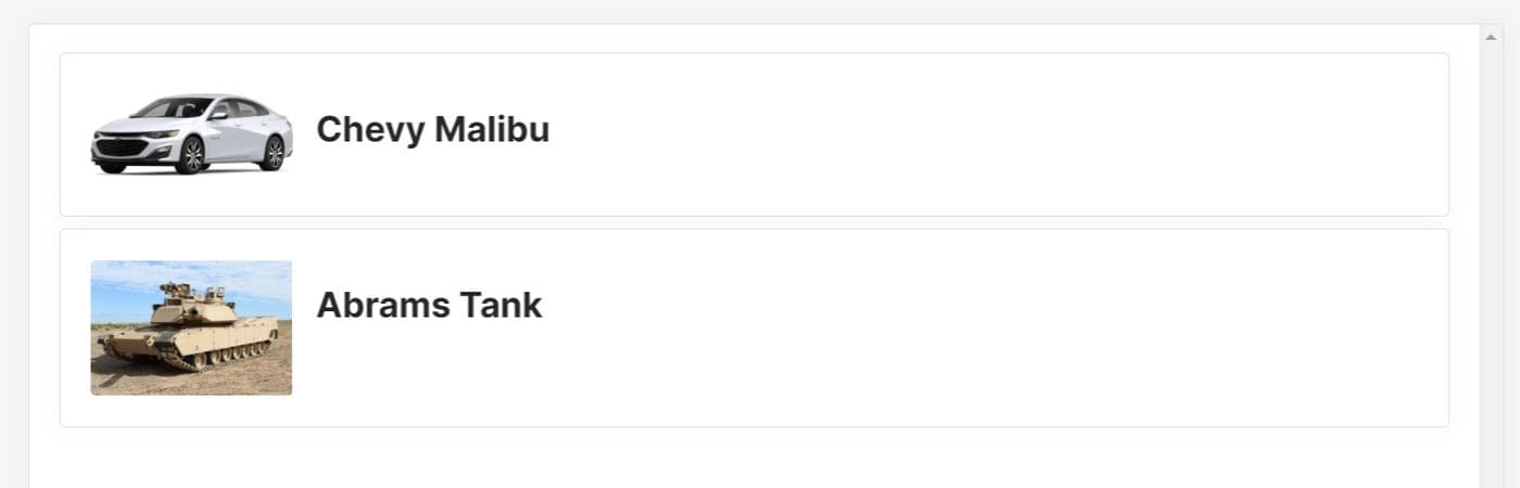 Add a Text component to the container and set its value to {{ListVehicles.data.name[i]}}. You should see a list of vehicles. Add another vehicle to watch your list update automatically.
