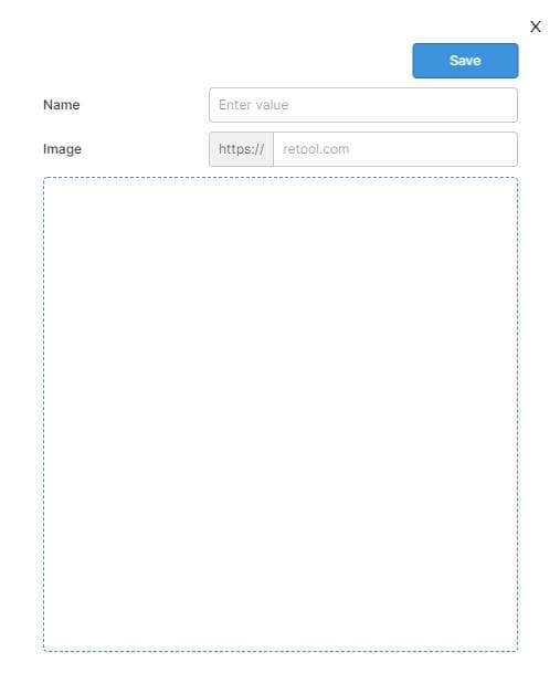 Click on the button. A dialog box should open in the middle of the screen. Drag a button, text input, URL input, and image component into the dialog box. Modify them to look like this: