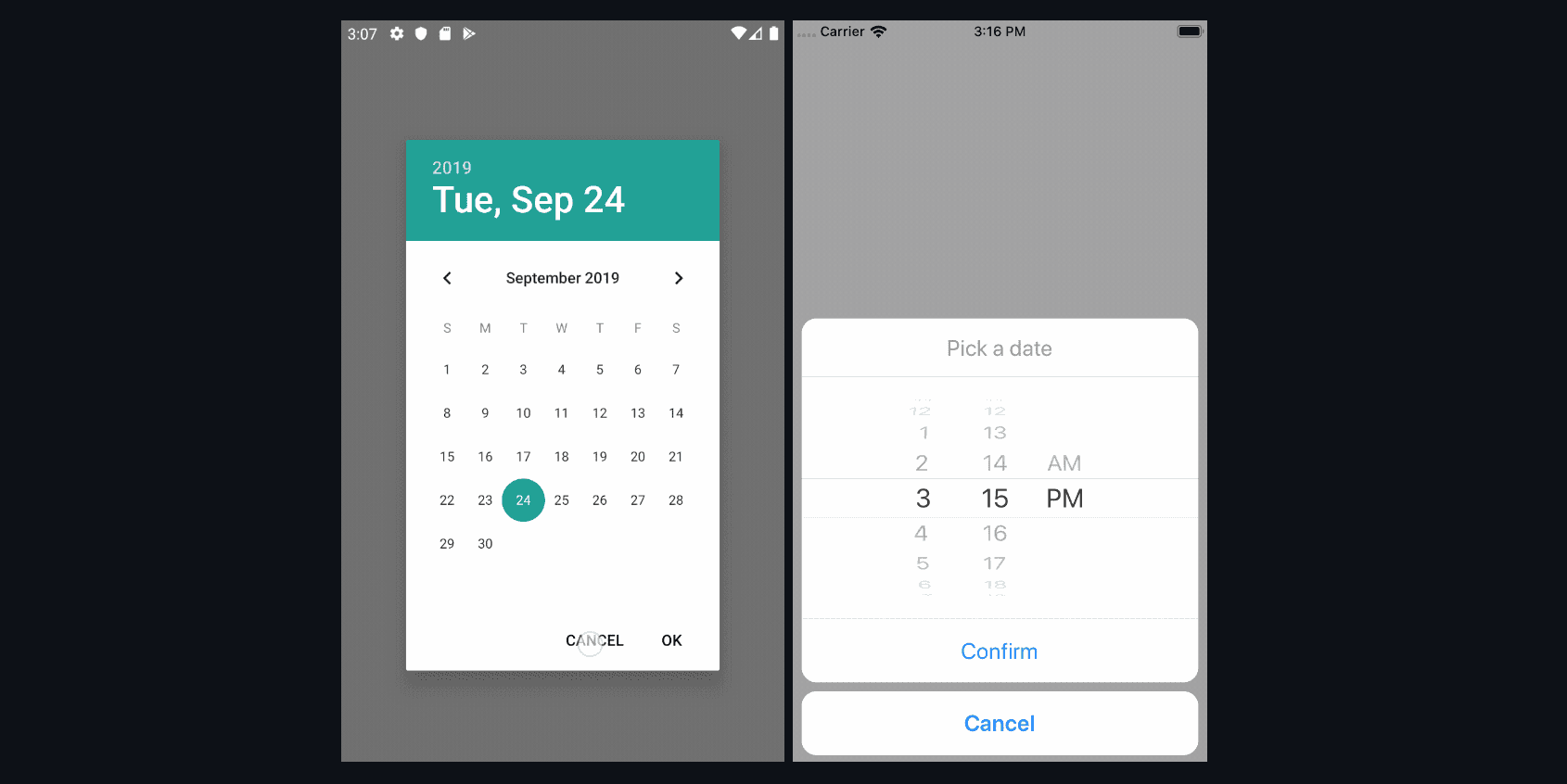 While React web applications have always relied on third-party date picker libraries, React Native apps used to have a native date-picker API for Android and iOS (named DatePickerAndroid and DatePickerIOS respectively). However, both were deprecated, with the framework instructing developers to use community packages instead.