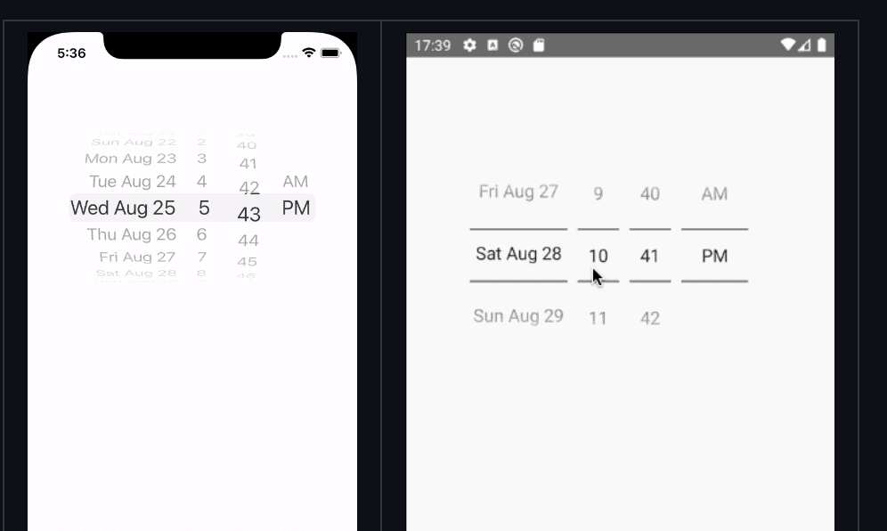 React Native DateTimePicker uses the native system components under its hood. For most, these should be very familiar aesthetically: