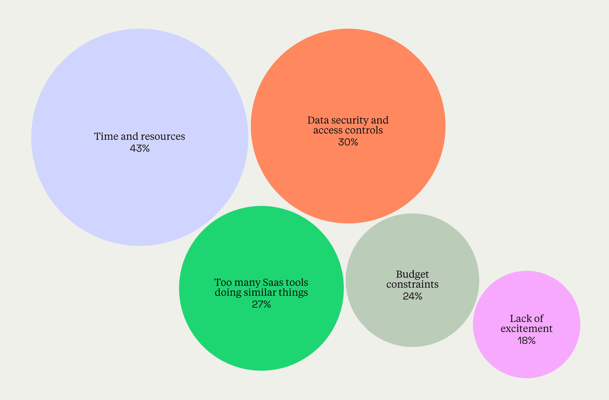 Of course, even business and technical leaders, eng teams, and developers that want to invest in internal tools can face some challenges in doing so. As was the case in previous years, time, resources, and access controls (the latter especially at companies above 5,000) remain the biggest blockers to building and maintaining internal tools.