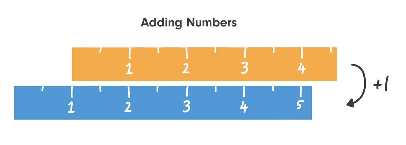 If we had two sticks with linear scales, we could use them to add numbers together. Suppose you slide the top stick by a distance of 1 unit. The bottom stick will now show the result of adding 1 to each number on the top stick.