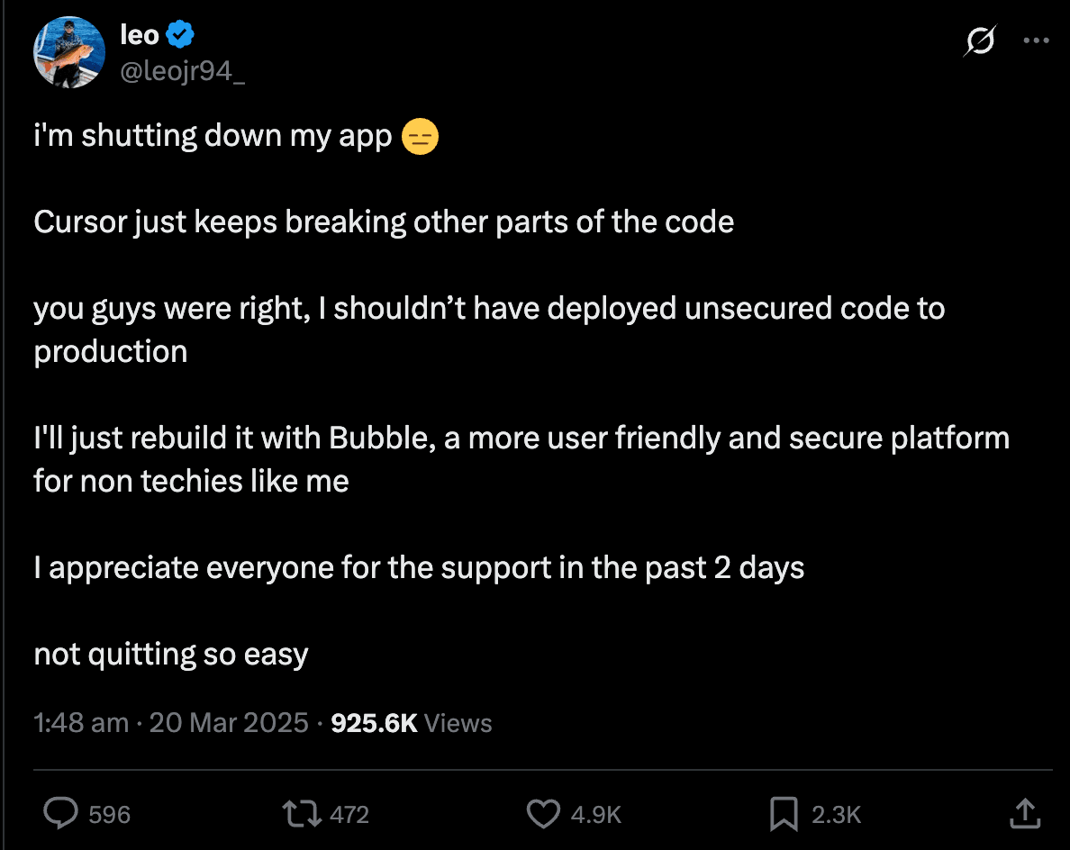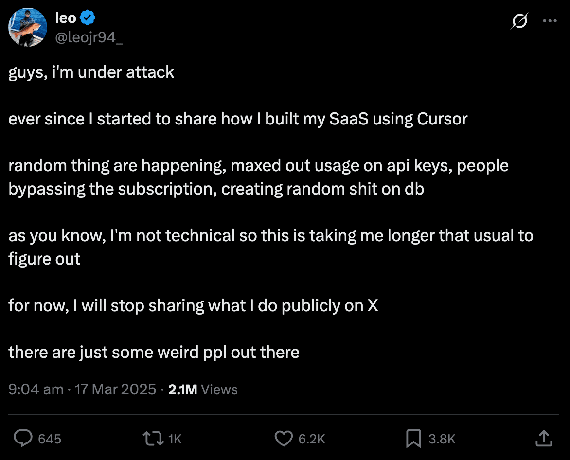 “AI doesn’t write secure code by default and you should probably ask it to check for injections or check it over yourself,” wrote Pieter Levels. The trouble with fully giving in to the vibes is that it’s easy to overlook (or be blissfully unaware of) the implications of vibe code in the real world.